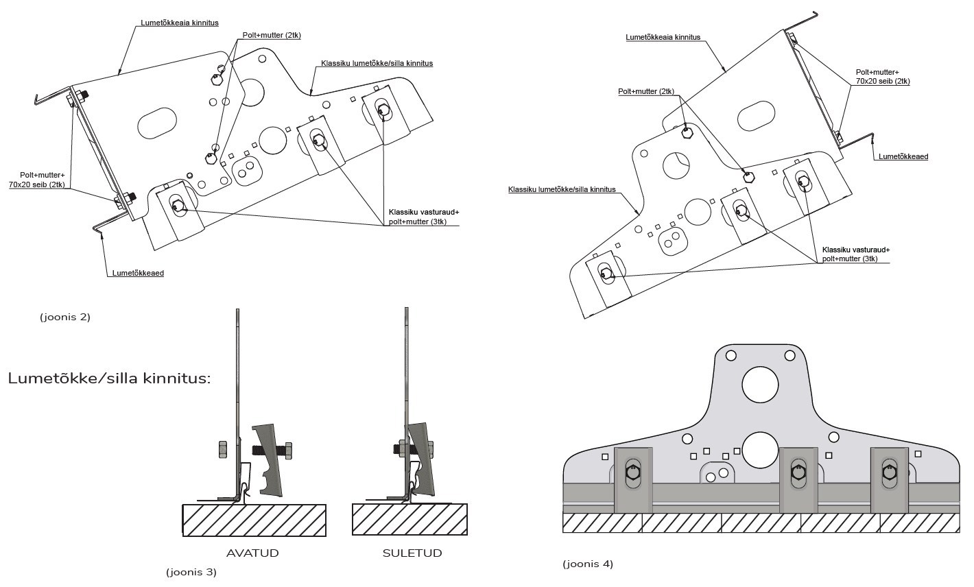 • Lumetõkke/silla kinnitus paigaldatakse vasturauaga (joonis 4) püstvaltsi kohalt poltidega pingutusmomendiga 28Nm.